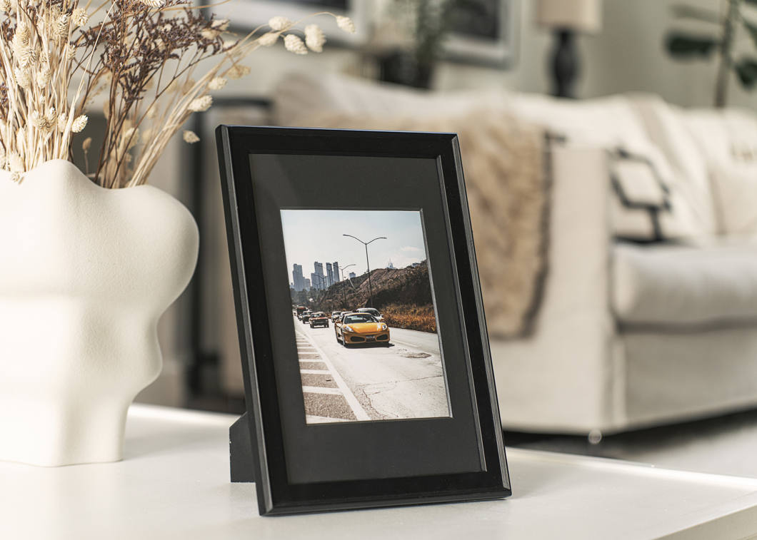 Each frame includes a black passepartout that adds striking contrast and sharp definition around your image. The dark mat enhances depth and drama, giving your photos or artwork a professional gallery-style effect right out of the box.