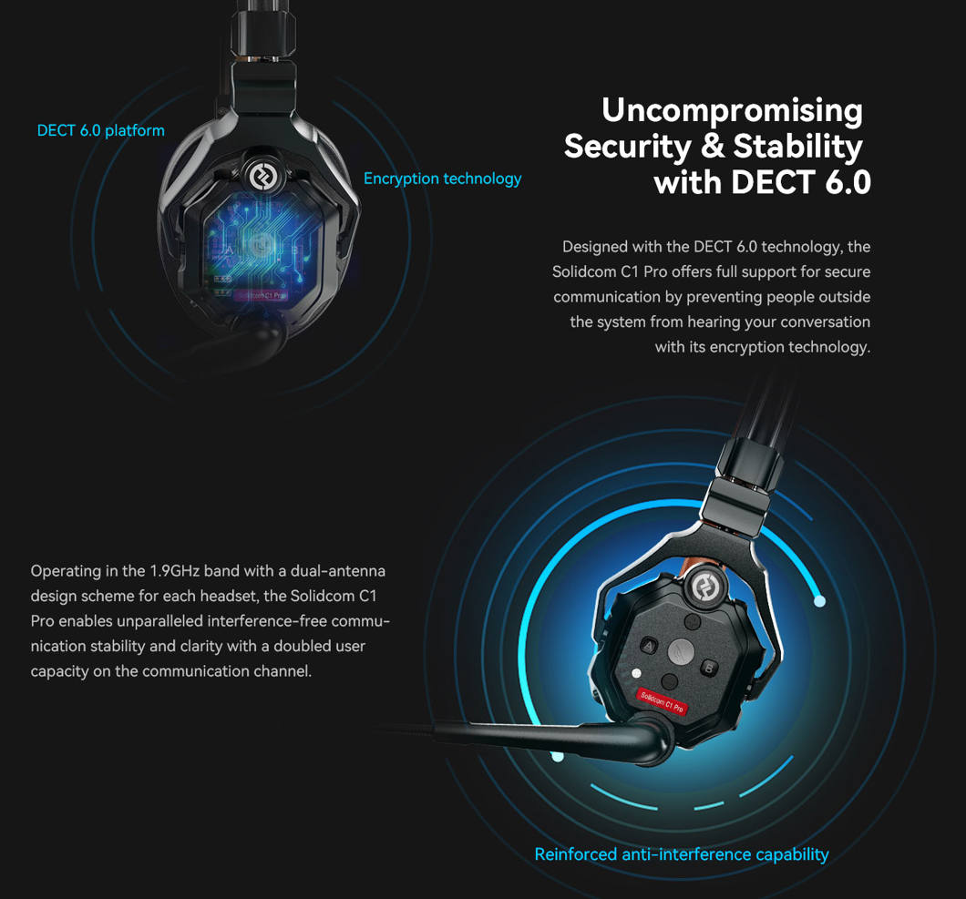 This new- generation headset system features advanced DECT 6.0 technology, a wideband audio range of 150Hz to 7kHz, and a reliable LOS communication range of up to 350m.