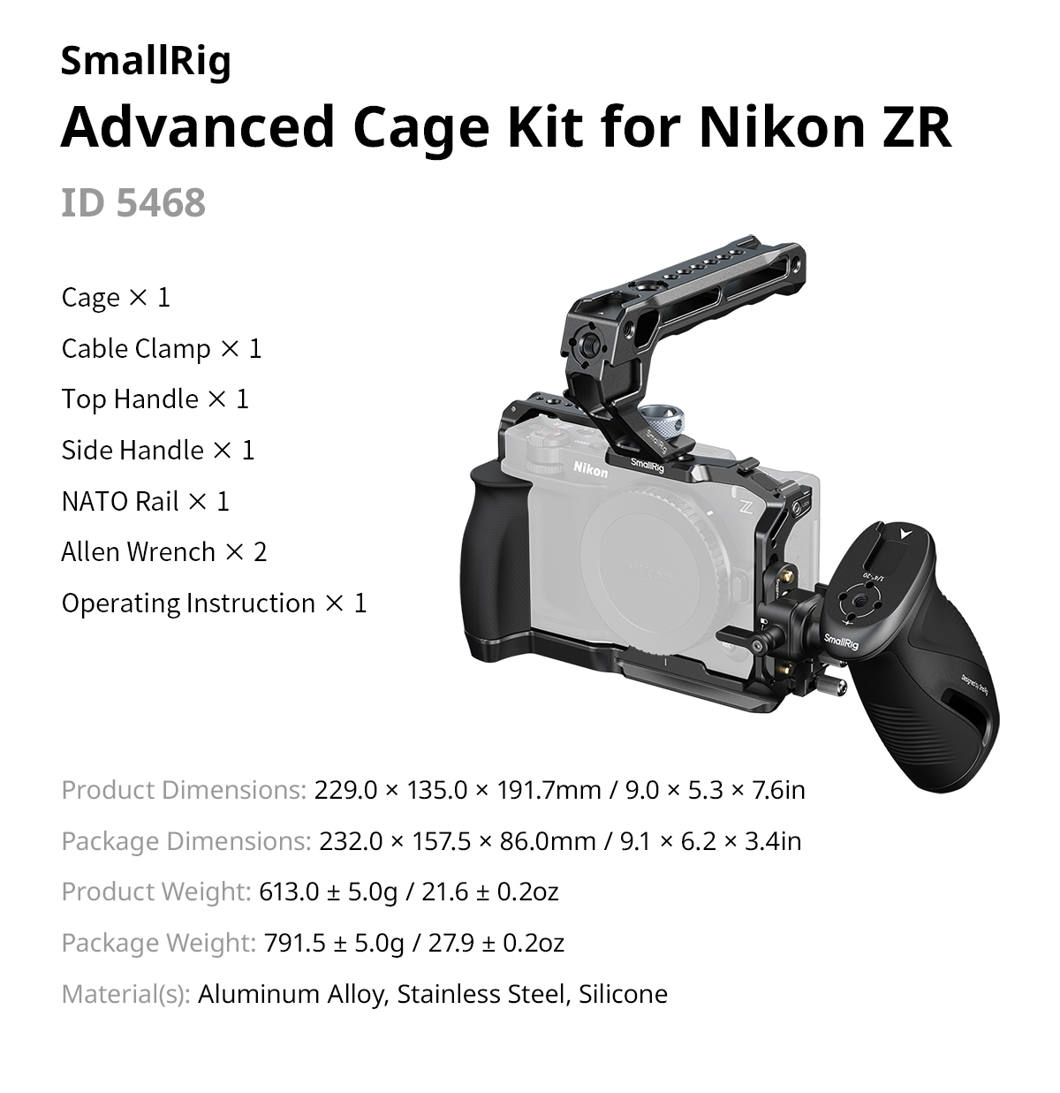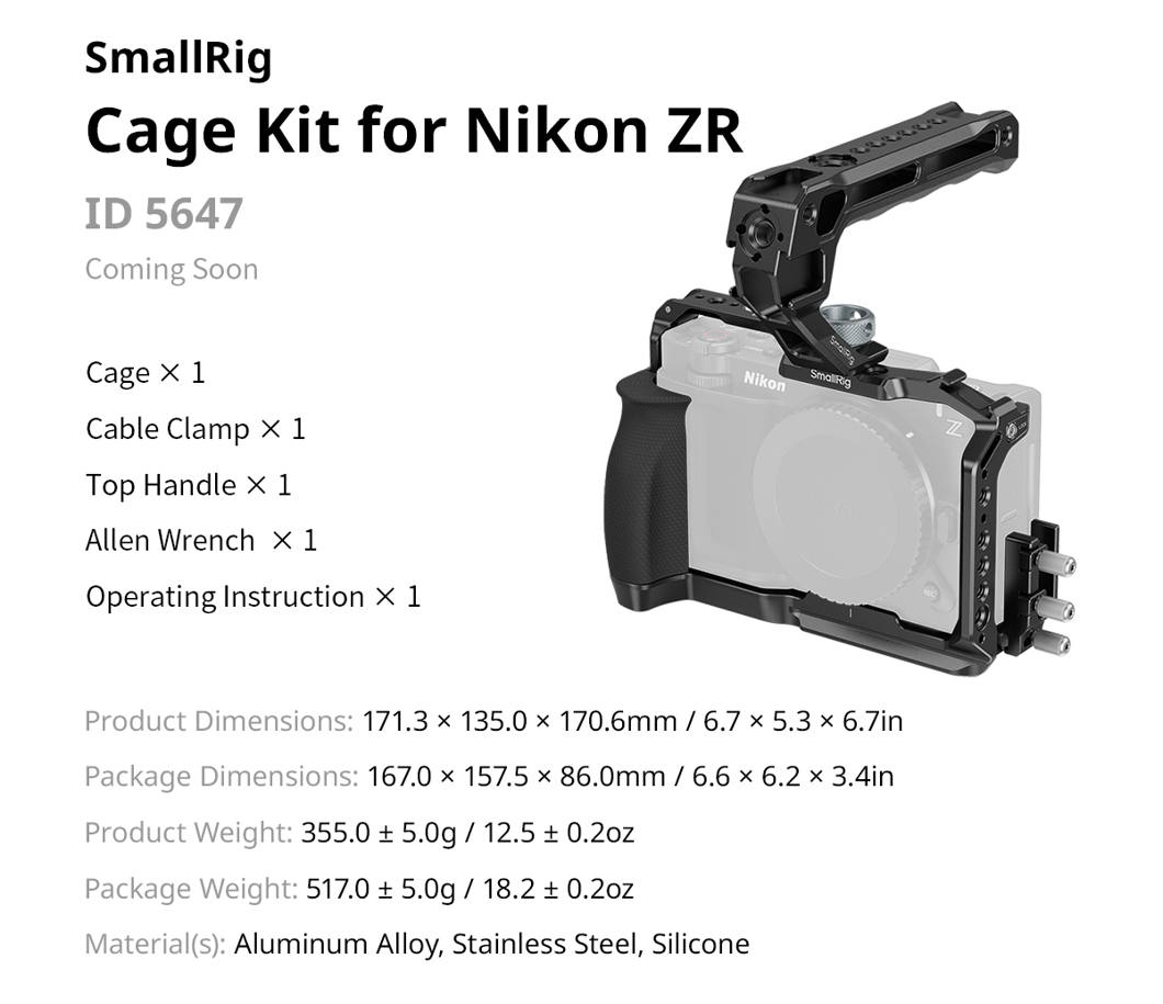 The cage offers extensive expansion options, including multiple 1/4"-20 threaded holes and locating holes for attaching accessories such as side handles or magic arms.
